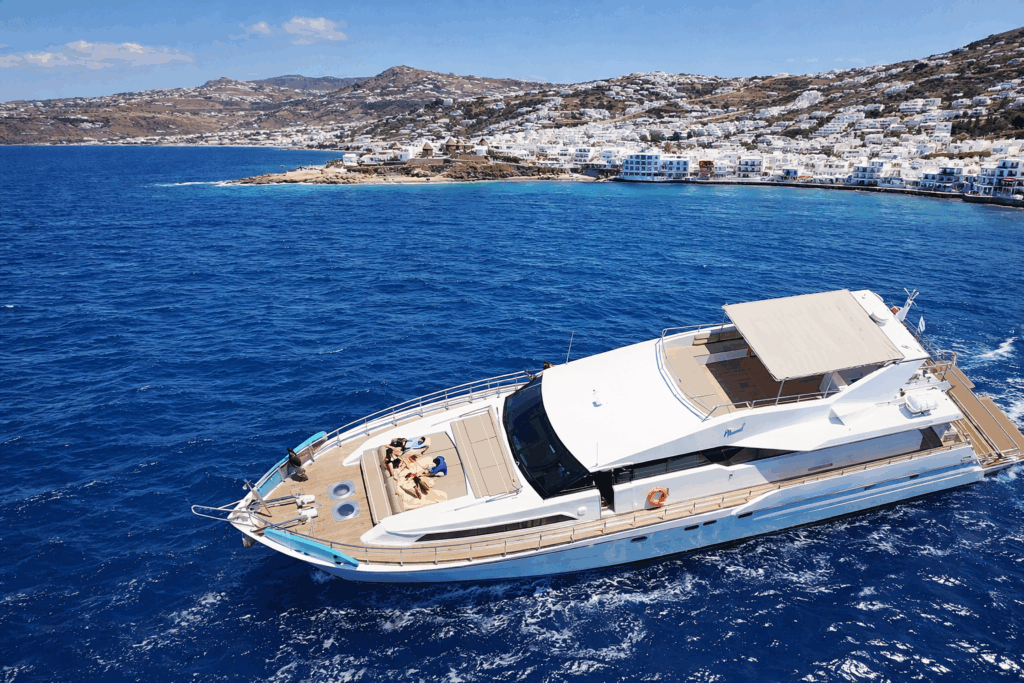 Based in Mykonos and capable of hosting a large number of guests, it offers something few yachts can provide. The feeling that the entire day is truly yours.